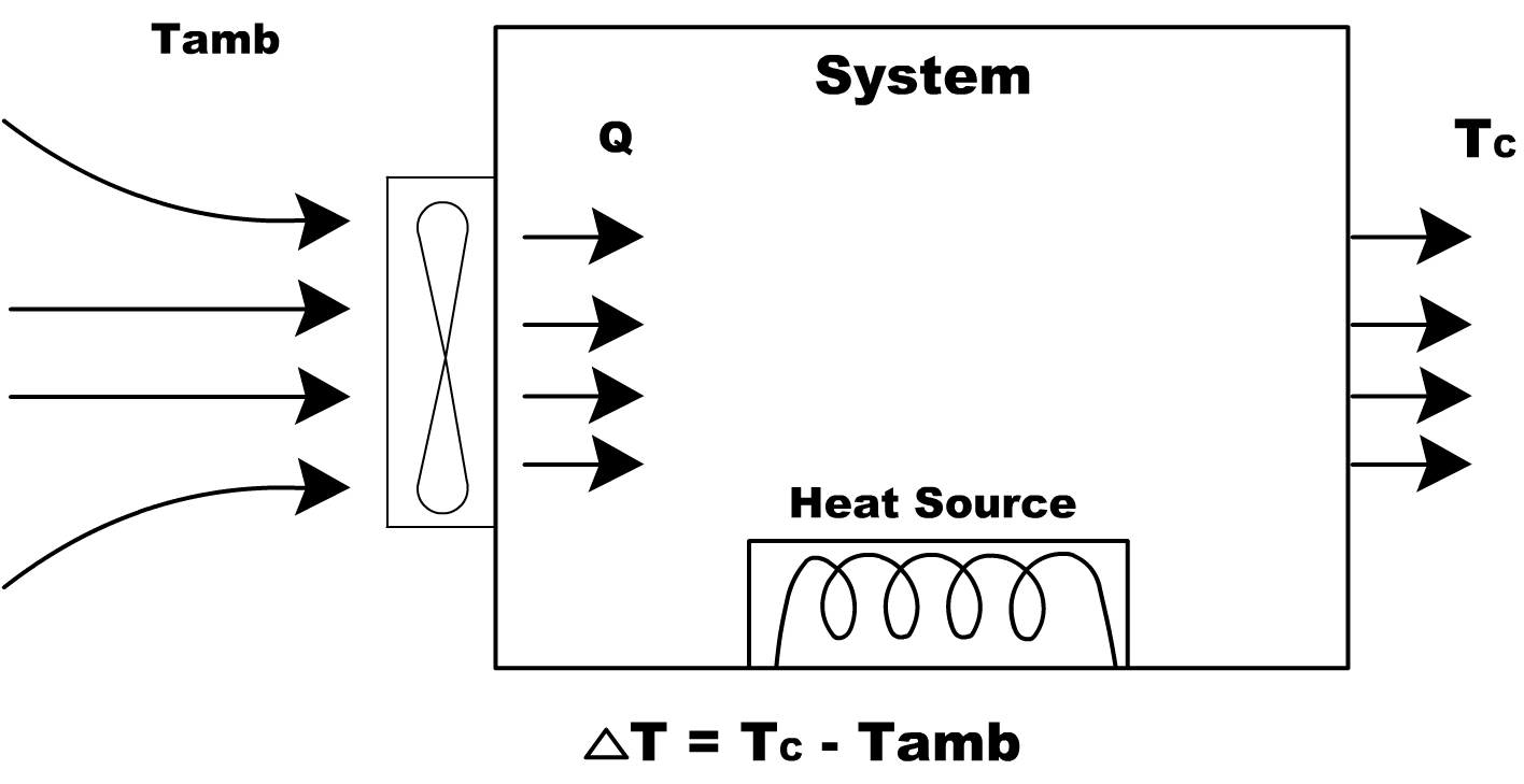在選用風扇之前,首先對系統的散熱風量預估,利用熱力學原理分析系統的散熱,得到如下公式: